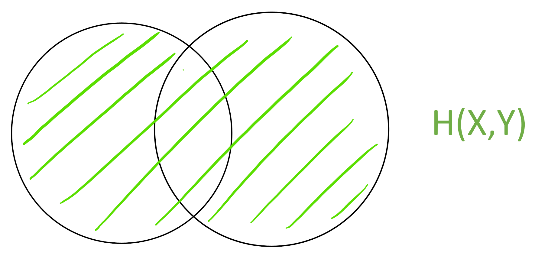 The joint entropy \(H(X,Y)\) is the “area” of the union \(X \cup Y\)