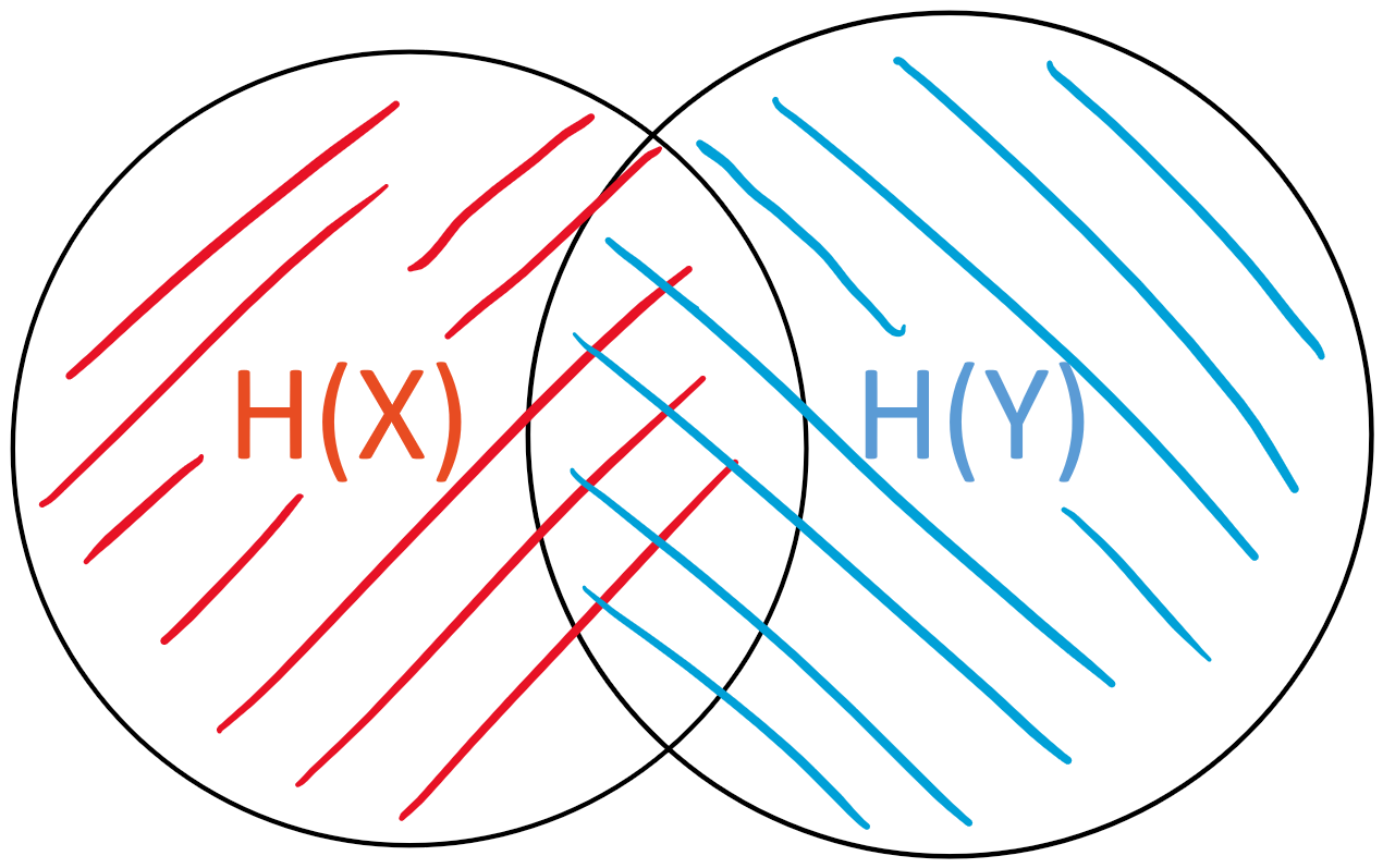 The entropy \(H(X)\) of \(X\), respectively \(H(Y)\) of \(Y\), is the “area” of either set
