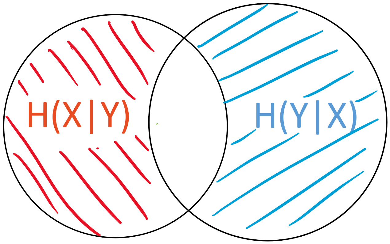 The conditional entropy \(H(X|Y)\) is the “area” of \(X - Y\)